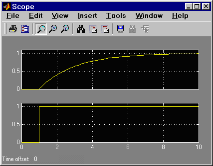 Для того, чтобы открыть окно просмотра сигналов необходимо выполнить двойной щелчок левой клавишей “мыши” на изображении блока. Это можно сделать на любом этапе расчета (как до начала расчета, так и после него, а также во время расчета). В том случае, если на вход блока поступает векторный сигнал, то кривая для каждого элемента вектора строится отдельным цветом.