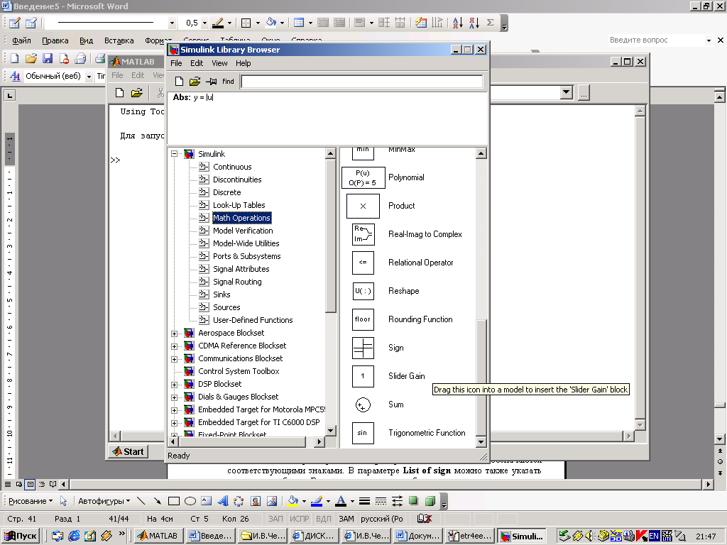 Использование пакета MATLAB – Simulink для исследования