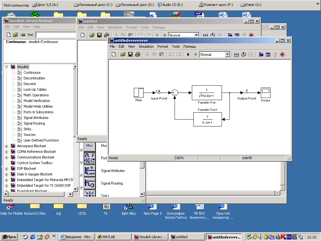 Исследование системы регулирования с использованием пакета Simulink