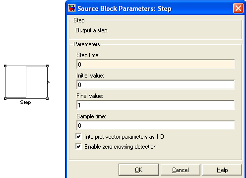 1. Генератор ступенчатого сигнала Step из раздела Sources - источники сигналов (см. Л.р. №1).