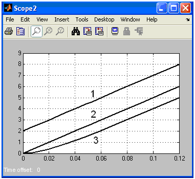 Назначение: строит графики исследуемых сигналов в функции времени. Позволяет наблюдать за изменениями сигналов в процессе моделирования.