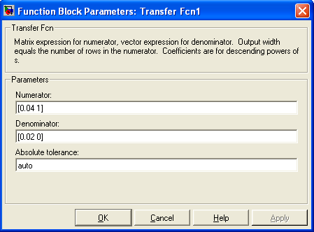 Рис.3.7 Параметры блока Transfer Fсn
