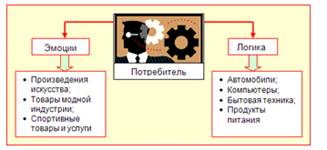 Рис. 2. Роль эмоций и логики при выборе различных типов товаров и услуг.