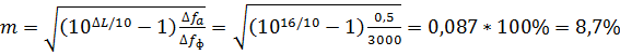 (нескольких дефектов) производится расчет глубины модуляции высокочастотной