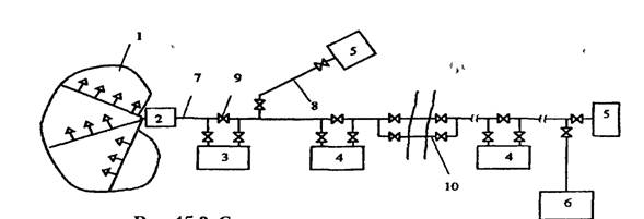 магистральный трубопровод; 8 - ответвления отмагистрального трубопровода; 9 -