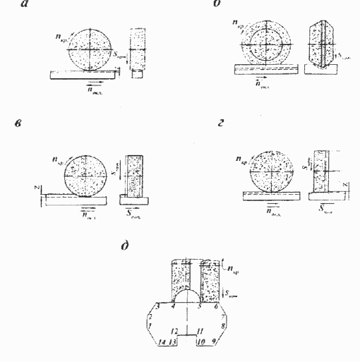 Рис. 1.1 - Схемы обработки на плоскошлифовальном станке