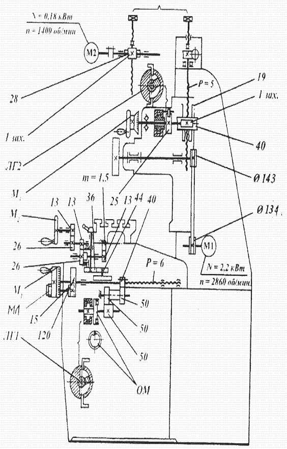 Рис. 3.1 - Кинематическая схема плоскошлифовального станка