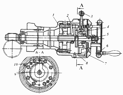 позволяет вести отсчет подачи с ценой деления 0,05 мм. Маховичок-лимб 9