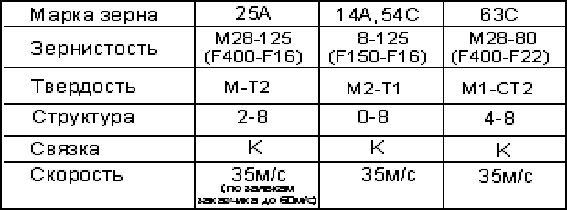 Таблица 7.1 Тип выбранного шлифовального круга