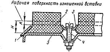 специальной установке. Вставки надежно закрепляют на полозе 5 болтами 4,