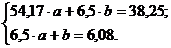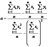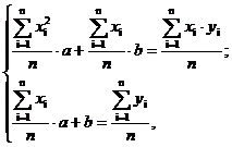 квадратов, находим параметры уравнения связи для линейной зависимости вида