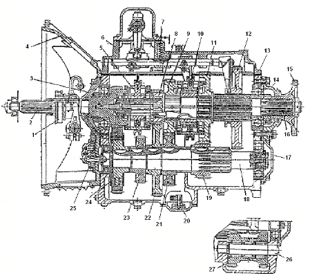 передачи; 23 - шестерня привода отбора мощности;24 - шестерня постоянного