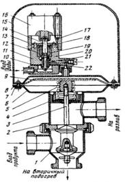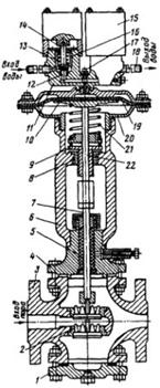 выталкивается под действием пружины 21 на грибок 10 и мембрану 19. Золотник 2