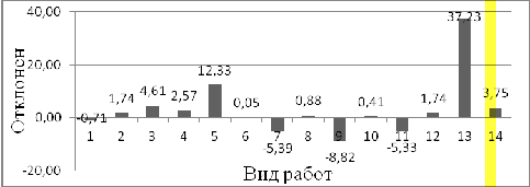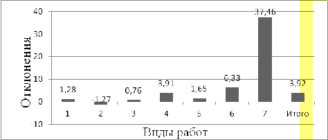 работ (37,46%) и работ по системе питания (6,33%). Меньше всего отклоняется