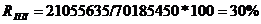 фактическое и плановое значения рентабельности совпадают и равны 30%. При этом
