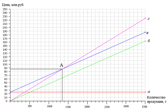 это - линия совокупных затрат (в). Точка пересечения линий в и г будет