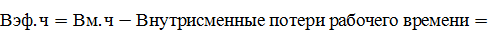 Календарный фонд времени Тк : в днях в часах Нерабочие дни по режиму - всего в том числе: праздничные выходные остановки на ремонт коммуникаций Количество дней работы в году по режиму (Др) То же - в часах (Чр) Внутрисменные остановки (сокращенные часы рабочих смен в предпраздничные дни) Номинальный (режимный) фонд Тн, час Планируемые остановки оборудования в рабочие дни *), час: на капитальный ремонт на текущий ремонт по технологическим причинам Итого Эффективный фонд времени работы Тэф, час Коэффициент экстенсивного использования оборудования Кэ |