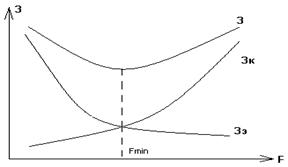 Зависимость З(F) имеет минимум, который дает значение оптимального сечения проводника F.