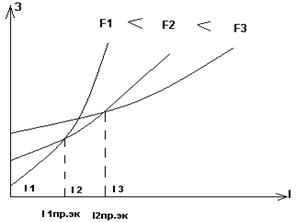 F1<F2<F3, тогда минимуму затрат на интервале до значения тока I1