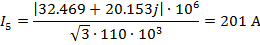 Ток на одну цепь линии на пятый год ее эксплуатации.