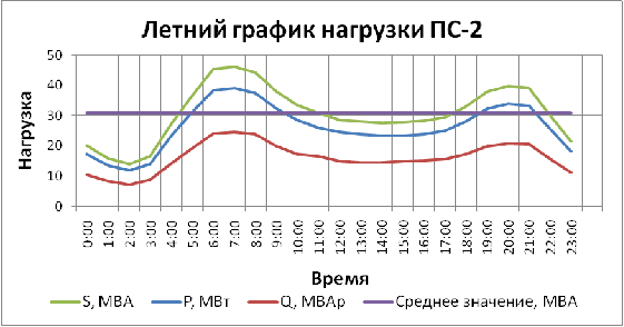Графики активной и реактивной мощности характерных суток зимнего и летнего дней