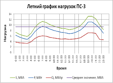 дни. Графики активной и реактивной мощности характерных суток зимнего и летнего