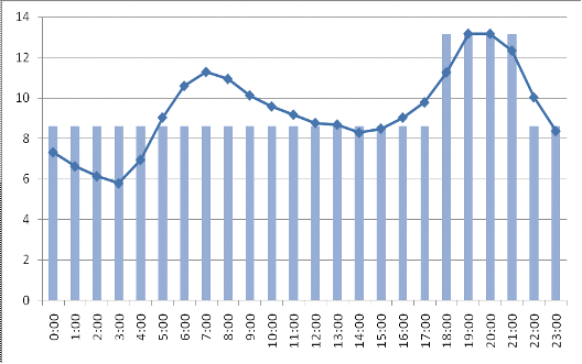 Рассмотрим график характерного летнего дня.