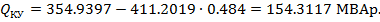 Проверим величину коэффициента реактивной мощности пункта питания.