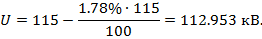 напряжение в начале линии. Результаты в таблице 7.1.4.