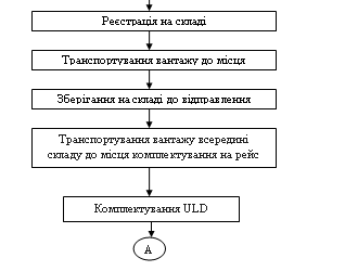 Всі вантажі, включаючи несправні, доставляються на склад, де їх приймає приймальноздатчик і дає вказівки про розміщення вантажу. Проводиться розкомплектування ULD.