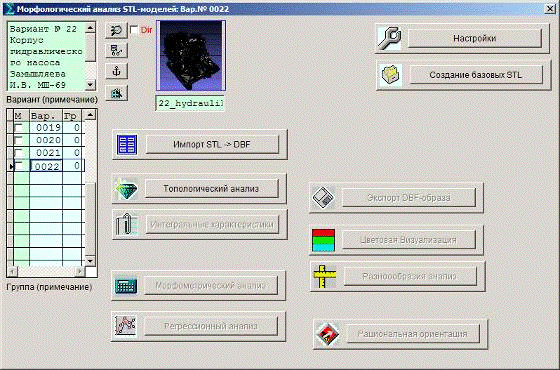 Главная форма системы морфологического анализа триангуляционных моделей представлена на рис. 2.1.