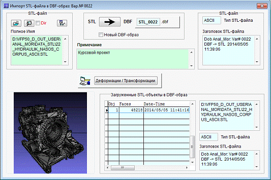 Рисунок 2.2. - Экранная форма импорта STL-файла в DBF-образ