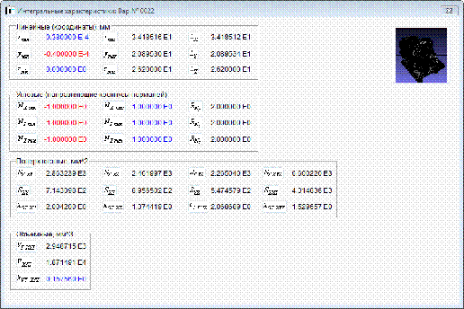 • Линейные интегральные характеристики определяют степень разброса координат вершин граней триангуляционной модели по осям координат;