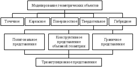 Триангуляционная модель (triangulation model) - частный случай полигональной модели, когда все грани представлены треугольниками. В триангуляционных моделях одновременно представлены элементы трех топологических порядков: точки (вершины), линии (ребра) и грани (плоские треугольники). Основные требования к триангуляционной модели твердотельного объекта - замкнутость и связность. Замкнутость поверхности триангуляционной модели - топологическое понятие, означающее отсутствие ребер с числом смежности AEdge ≠ 2 и вершин AVert < 3. Связность объекта (многогранника) означает то, что он не состоит из нескольких непересекающихся объектов, т. е. от любой вершины можно перейти к любой вершине по ребрам. Смежностью ребра называют количество его вхождений в треугольники триангуляционной модели. Числом смежности (степенью) вершины называют количество ее вхождений в ребра триангуляционной модели.