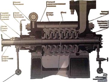 Насос типа ЦНС 240 - центробежный, горизонтальный, секционный, однокорпусный с односторонним расположением рабочих колес, с гидравлической пятой, подшипниками скольжения и торцовым уплотнением.