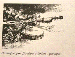 Определен формат для творческой композиции: 420*560. Инструментами и материалами для выполнения работы является простой карандаш, перо, кисти беличьи № 1, 4, 8, 12; черная тушь.