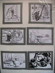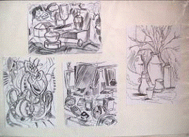 Затем был выполнен поисковый вариант натюрморта с использованием различных графических приемов.