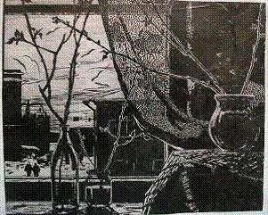 В пятновой графике основным изобразительным элементом являются черные и белые пятна. В крайнем выражении пятновая графика приходит к искусству силуэта - черный силуэт на белом фоне или белый силуэт на черном фоне. Пятновая графика не менее, а, может быть, даже более условна, чем линейная. Она двухмерна. Она не имеет глубины и не пытается ее создать. Изобразительные возможности плоскости выявляются здесь в полной мере. Здесь работает на изображение плоскость и только плоскость. Сочетание различных по конфигурации пятне - плоскостей определяет изобразительные формы.