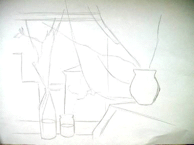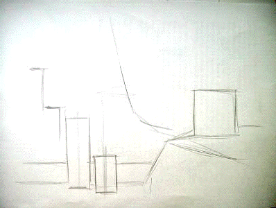 2. Линейное, сквозное объемно-пространственное построение натюрморта