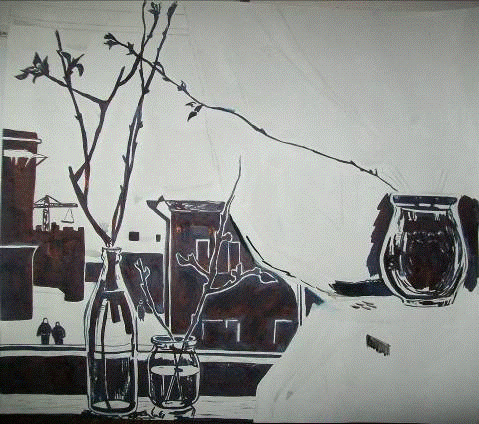 Чрезвычайно полезна работа над рисунком в технике "отмывка". Отмывкой называется акварельная работа одним цветом по сырому (тушь, соус, акварель). При длительной работе в этой технике целесообразно сначала легкими штрихами карандаша нанести основное построение рисунка. После чего, начиная с самых светлых мест, постепенно нагружать рисунок, усиливая тон. Но эту технику можно очень успешно применять и в быстрых набросках одной кистью без первоначального рисунка карандашом. Такая работа развивает способность видеть общую форму, чувство тона, отбирать нужные моменты из жизни, что очень важно для серьезной творческой работы.