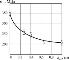 Исследуемый низкотемпературный отжиг с нагревом до 500– 700 ° С практически не создает дополнительного обезуглероживания, глубина слоя остается такой, какая сформировалась в ходе проката заготовок, и составляет 0,086±0,033 мм. Влияние глубины обезуглероженного слоя (hос) на величину предела выносливости стали 20Н2М изображено на рис. 1.19. Глубина обезуглероженного слоя в штангах определялась методами М и МТ согласно ГОСТ 1783–68.