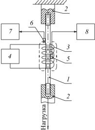 спомощью немагнитных штанг 2 длиной 300 мм (рис. 3.10), в которые ввинчивался образец 1. Нормальная составляющая магнитного поля остаточно намагниченного образца вблизи его конца измерялась холловским датчиком 6 и магнитометром 7. Тангенциальная составляющая поля остаточно намаг-