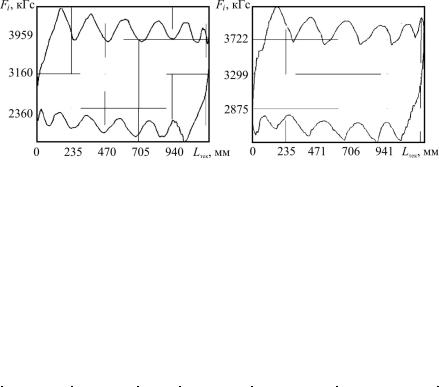 Рис. 6.7. Текущая нагрузка в точке подвески колонны насосных штанг (на полированном штоке) УСШН на скважине № 2210 Павловского месторождения ООО «ЛУКОЙЛ-Пермь» до 21.10.2006 г. и после тепловой обработки добываемой жидкости при постоянном числе качаний колонны насосных штанг: а – динамограмма от 30.01.2007 г.