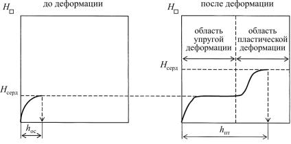 Рис. 1.18. Механизм образования протяженного слоя с пониженной твердостью: hос – глубина обезуглероженного слоя; hпт – толщина слоя с пониженной твердостью