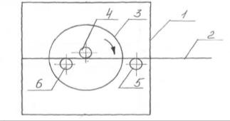 центральный опорный стержень (палец); 5 - неподвижный стержень на станине; 6 -