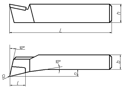 Для подрезания торцов и высоких уступов, выбран токарный подрезной отогнутый резец с пластинками из твердого сплава