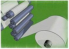 Секция отжима также влияет на толщину конечного листа и гладкость его поверхности.[3] Сырой уже сформированный лист под действием давления и вакуума проходит через целый ряд валиков. Одни валики отжимают воду, другие, обогреваемые изнутри паром, высушивают ее, третьи полируют.