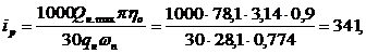 nм = 30ipωп/π = 30∙341∙0,774/3,14 = 2522 об/мин