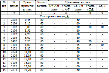 Предварительную информацию передают из отделения дороги вместе с заданием на очередную смену. Она содержит данные о поездах, которые прибудут на станцию за смену (12ч) с каждого направления, в том числе поступающих в переработку, а также о вагонах, следующих под выгрузку на данную станцию. Периодически через каждые 4 - 6 часов отделение дороги передает на станции откорректированную информацию со следующими данными о каждом поезде: номер, индекс, предполагаемое время прибытия, общее число вагонов и их масса, число вагонов по назначениям плана формирования (для перерабатываемых поездов), а также число вагонов под выгрузку на данную станцию. Эти данные из отделения дороги передает информационный центр или оператор при дежурном по отделению.