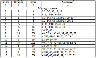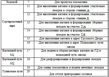 Таблица 7 - Маршруты движения поездов, локомотивов и маневровых составов